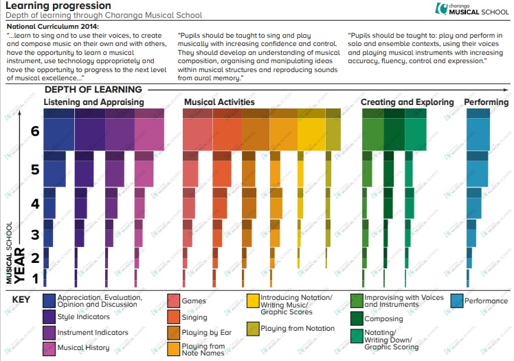 The units of work enable children to understand musical concepts through a repetition-based approach to learning. Learning about the same musical concept through different musical activities enables a more secure, deeper learning and mastery of musical skills. Musical teaching and learning is not neat or linear. The strands of musical learning, presented in the lesson plans and the on-screen resources, are part of the learning spiral. Over time, children can both develop new musical skills and concepts, and re-visit established musical skills and concepts. Mastery means both a deeper understanding of musical skills and concepts and learning something new.