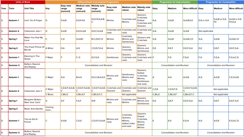 Teachers at Manland use resources which bring all the possible musical learning outcomes together for the end of year and Key Stage, linking to the Progressive Teacher and Children’s Statements within the Assessment Framework. It highlights differentiated and deeper learning for each child that constantly builds through each step/lesson, unit and year: