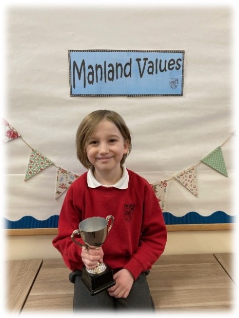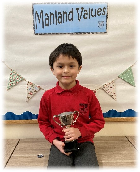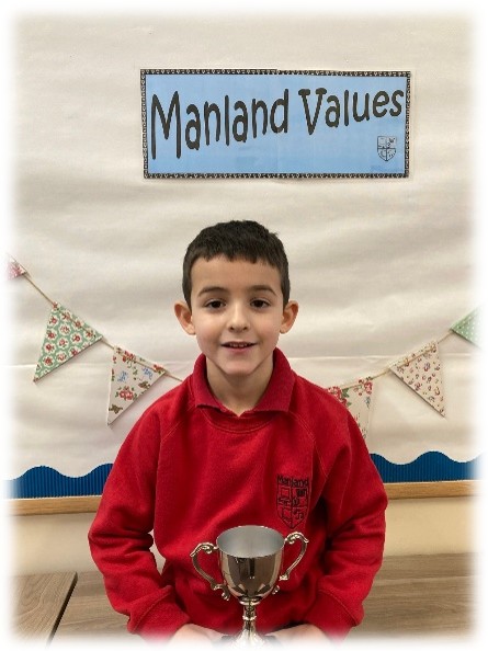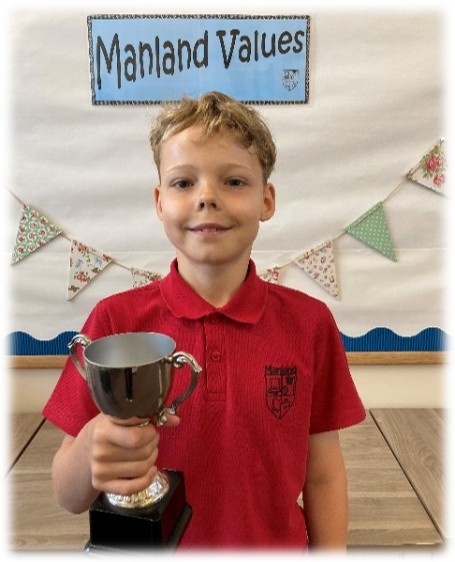 I am delighted to nominate Arlo for the Manland Cup! Arlo truly embodies the value of being responsible, coming into school each day with a positive attitude and a readiness to learn. He shows kindness to everyone around him and is always willing to lend a helping hand when friends need support.