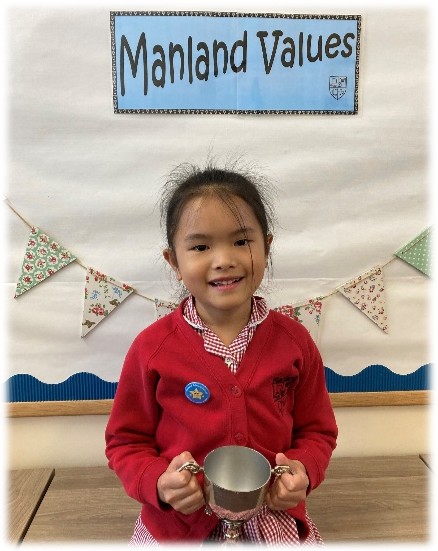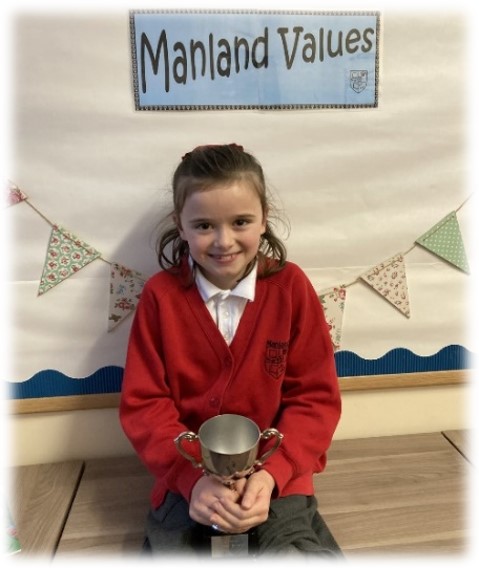 Manland Primary School is a supportive, caring community in which we encourage each other to achieve our potential in everything that we do. We have our own school values which we encourage the whole school community to demonstrate. These values help us to become considerate of others in our school, as well as, helping us to become thoughtful citizens in the wider world. Our whole school values run alongside our work on British Values. We have a Manland Values cup which is awarded each week to a pupil who has demonstrated one, or more, of our values.