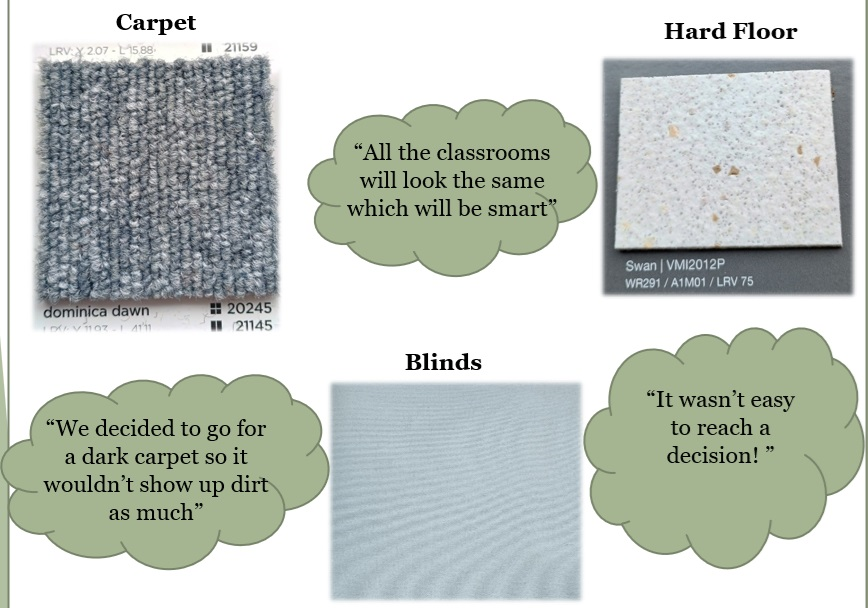 Recently, our Pupil Parliament were faced with one of the most important debates of their parliamentary careers, as they were tasked with selecting the colour of the new classroom carpets, blinds and hard floor for the Manland Makeover!
